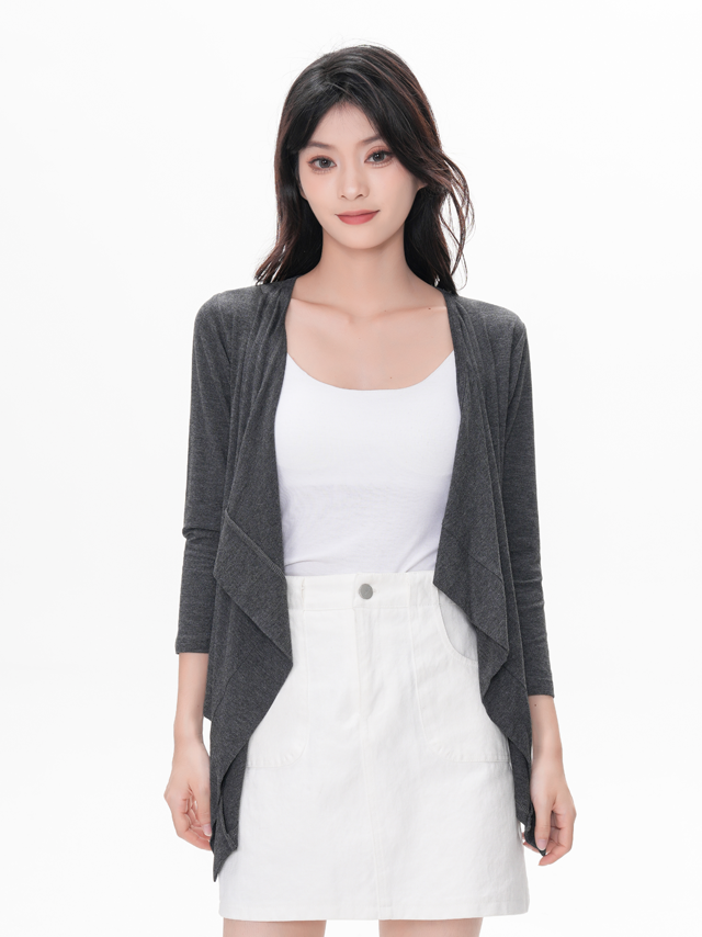 Engineered with a premium bamboo-spandex knit blend, this lightweight bamboo knit outerwear solves core pain points of traditional cardigans: it stays breathable and cool in mild weather, while delivering gentle, non-stuffy warmth in cooler months. Its non-bulky construction pairs perfectly with tees, tanks, dresses and blouses, making it a true 12-month wardrobe staple for end consumers and consistent revenue driver for your business.