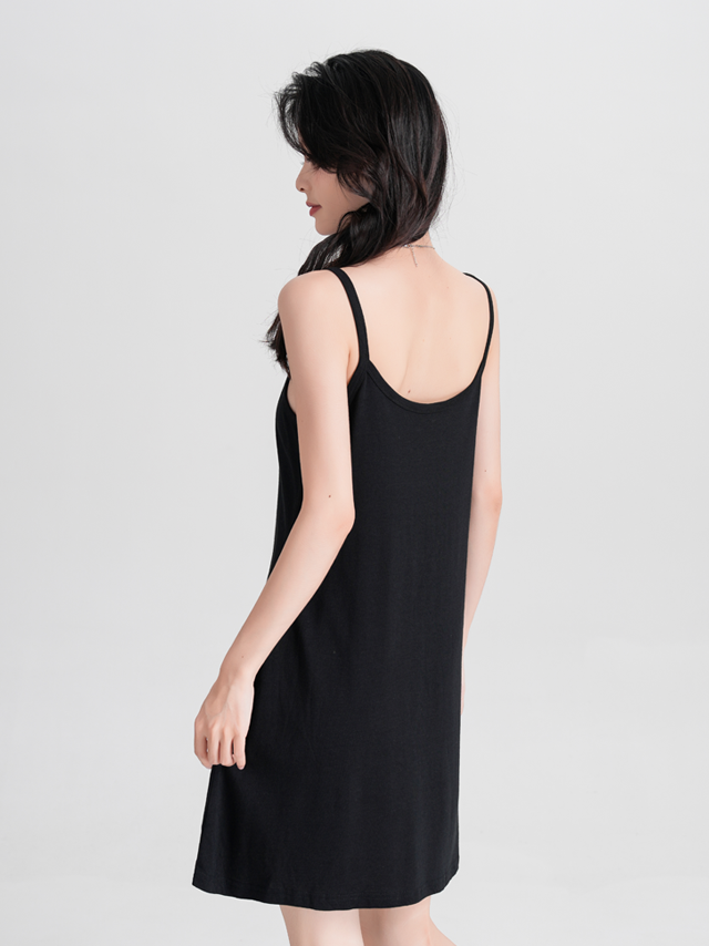 The sleek black design and minimalist spaghetti strap silhouette make this bamboo spaghetti strap dress incredibly versatile. It works perfectly as nightly loungewear, a casual home dress, a lightweight beach cover-up, or a base layer for brunch outings. This multi-scenario functionality broadens your target consumer base and extends the product’s sales cycle beyond seasonal sleepwear lines.